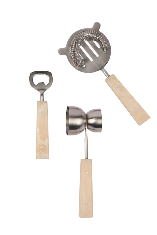 The RoseBuck Frost Bar Set includes a strainer, bottle opener, and jigger — crafted for everyday use and easy entertaining. The mix of brushed stai...