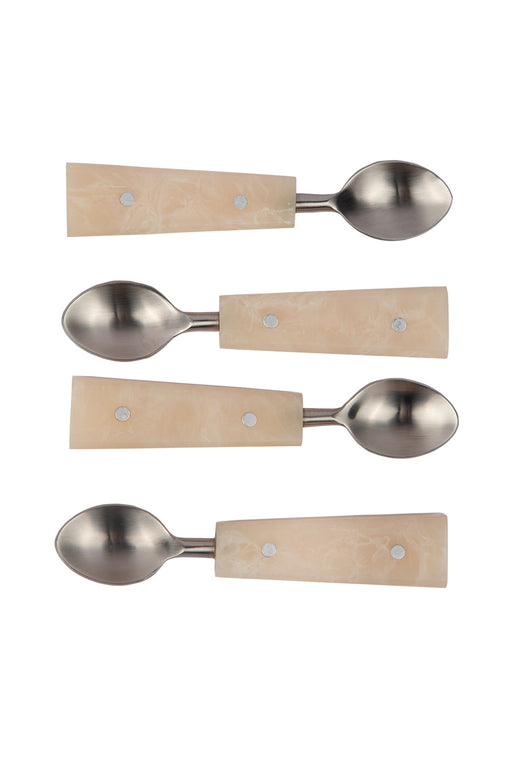 The RoseBuck Frost Small Spoons pair brushed matte stainless steel with stone-textured resin handles. Sized for desserts, coffee, or small servings...