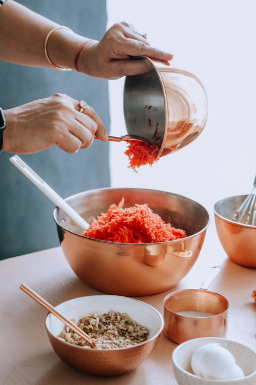 Our Pure Copper Large Bowl can be used for all your serving and mixing needs. Add in our Measuring Cups and Spoons to really liven up your bakeware...